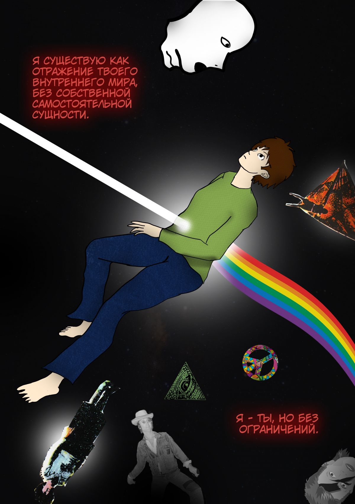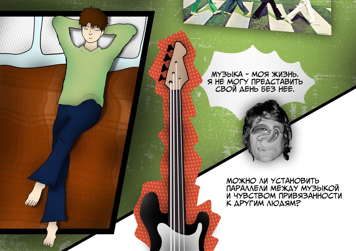 РИСОВКА ШИКАРНО И МНЕ ПОНРАВИЛОСЬ ФИЛОСОФСКИЕ РАЗМЫШЛЕНИЯ АВТОРА НУ ТОЛЬКО одно замечание стоило бы показать любовь к музыке персонажа более отчётливее что бы читатель поверил в его любовь музыке а так ВСЕ СУПЕР ТЫ БОЛЬШОЙ МОЛОДЕЦ ТО ЧТО РАССКАЗАЛ ЭТО ИСТОРИЮ МОЕ УВАЖЕНИЕ!!